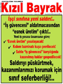 Direnişin ve derslerinin sınıf hareketimize maledilmesinde kitabın önemli katkıları olacağı çok açık. Bu nedenle öncü işçilerin eline ulaştırılması, okunup tartışılmasının sağlanması için çabayı hakediyor. Bunun için, nasıl direniş süresince Aymasan işçilerinin yanında yer aldıysak direnişin tanıtılmasında da bu aynı birlikteliği sürdürmemiz gerekiyor. *Faaliyetimize yönelik saldırılar aralıksız sürmekte. Son olarak Antakyada bir okurumuz (Oktay Rende) tutuklanmış bulunuyor. 15 Haziran 2002 Cumartesi günü, saat 11:00 civarında Armutlu Mahallesinde gözaltına alınan, 16 Haziran 2002 Pazar günü de çıkarıldığı savcılıkça tutuklanma talebiyle mahkemeye sevkedilen okurumuz, mahkeme tarafından Kızıl Bayrakın Armutlu Mahallesindeki geçmiş faaliyetleri gerekçe gösterilerek tutuklanarak Hatay E Tipi Kapalı Cezaevine gönderilmiştir. *Esenyurtta gazete satışı yaptıkları sırada gözaltına alınan iki okurumuzdan biri, bir gün sonra serbest bırakılmıştır. Diğer okurumuz ise hakkında gıyabi tutuklama kararı olduğu gerekçesi ile halen gözaltında tutulmaktadır. *Geçen hafta mühürlenen Sefaköy İşçi Kültür Evi başvuru üzerine tekrar açıldı. Bu da kapatmanın ve mühürlemenin hukuki olmadığını, tümüyle keyfi gerekçelere dayandırıldığını göstermiş oldu. Gerek kurumlara gerekse de çalışanlarımıza ve okurlarımıza yönelik benzer saldırıların bizleri yıldırmaya ve mücadeleden caydırmaya yetmeyeceği faaliyetlerimizle ortadadır. Sistemin baskı ve engelleme çabaları arttıkça, bizler de daha fazla bir gayret ve azimle görevlerimize yükleneceğiz. |