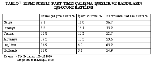 AB ülkelerinde cinsiyet ayrımcılığı: Kadın emekçiler, erkek emekçilerin aldığı ücretin %84ünü almaktadır. 1995-98 yılları arasında geçici istihdamdan sonra işsiz kalma oranı kadınlar için %31, erkekler için %19dur. (Tablo 1)