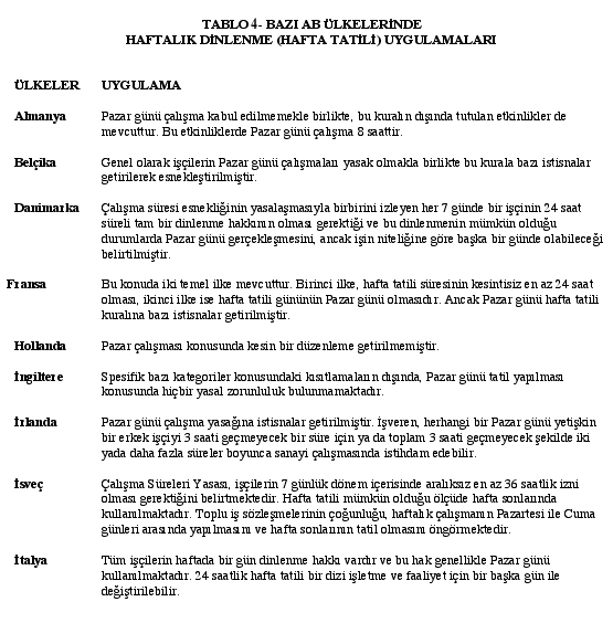 Yanı sıra çalışanların %56.8i gece çalışmasından farklı derece etkilenmektedir. Avrupada yaşayan 4 işçiden biri pazar günleri, işçilerin %47si de cumartesi günleri mesai yapmak zorunda bırakılmaktadır. (Tablo 3-4)