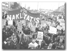 En önde eylemi örgütleyen bileşenlerin imzalarının yeraldığı “Geleceğimizi İMF kredisine sattırmayacağız!” şiarlı pankart taşındı. Peşisıra DİSK, KESK Şubeler Platformu ve devrimci güçlerle reformist çevreler yürüdü.