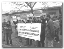 Eylem, “30 Mart 1972 Kızıldere 21 Mart 2008 Newroz! Kan çığırtkanlarının değil halkların kardeşliği safındayız!” pankartı ve ortak dövizler açılarak Yunus Emre Yurdu önünden yemekhaneye yapılan bir yürüyüşle başladı. Yemekhane önünde yapılan açıklamada, sınır ötesi harekatla birlikte üniversitelerin de ırkçı uygulamaların bir parçası haline getirilmeye çalışıldığı vurgulandı. Ekim Gençliği, DÖB, ODAK, DPG, SGD ve SDG’nin örgütlediği eyleme 50 kişi katıldı. TKP’li öğrenciler, DGH, Eskişehir Gençlik Derneği ve ÖDP gençliği destek verdi.