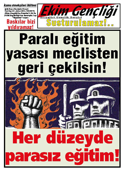 Sermaye devletinin toplumsal yaşamın her alanına bir karabasan gibi çökmüş bulunan iMF patentli politikalarının bugünkü güncel hedeflerinden birisi de eğitim. Halen meclis komisyonlarında bulunan YÖK yasa tasarısı ile üniversiteler sermayenin ihtiyaçları doğrultusunda yeniden yapılandırılıyor. Eğitimin piyasalaştırılması süreci böylelikle yeni bir kapsam kazanıyor. Bu, paralı eğitimin tüm kuralsızlığı ve çıplaklığı ile yaşama geçirilmesi anlamına geliyor. Aynı süreç biraz geriden takip etse de ilköğretim ve liselerde de başlatılmış bulunuyor. Harç uygulaması, faşist disiplin yönetmelikleri vb. birbirini izliyor.
